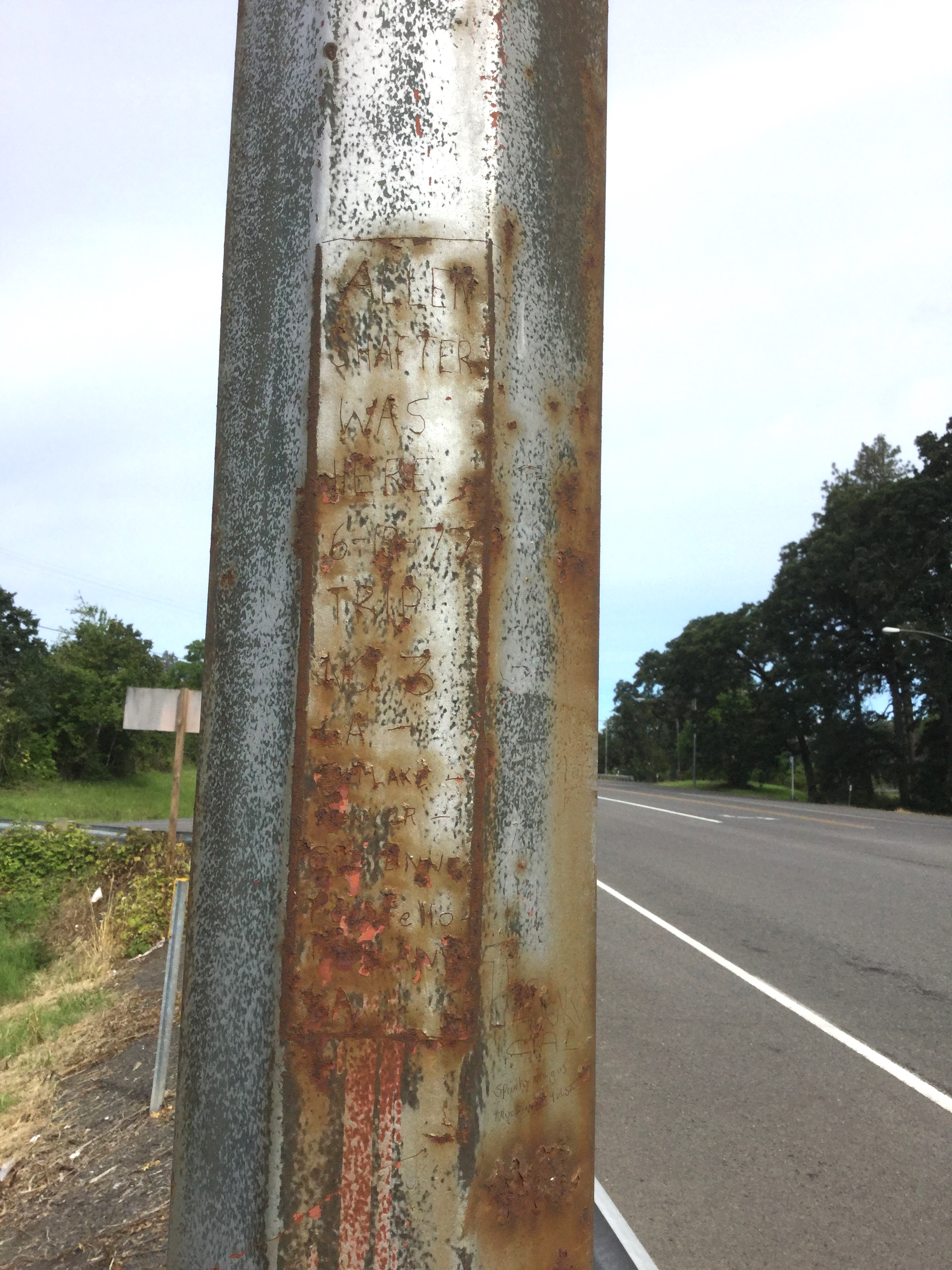 Left a record of my travels on a lamp post outside of Eugene Oregon on June 19, 1977 (photo courtesy of a man named Forest, who took this picture 39 years later on June 19, 2016!).
