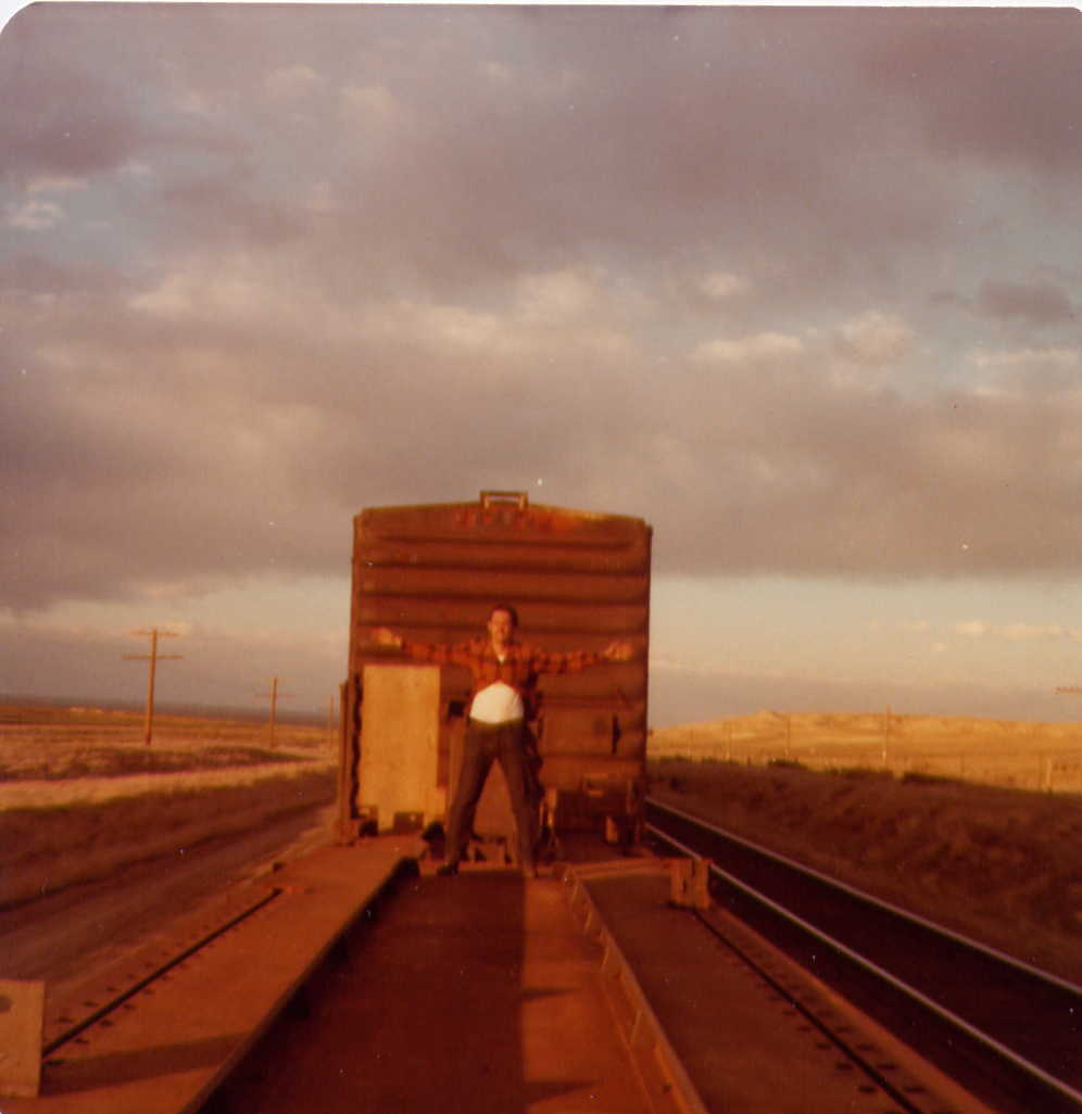 Flying through Southern Wyoming on a flat car (June 1977)